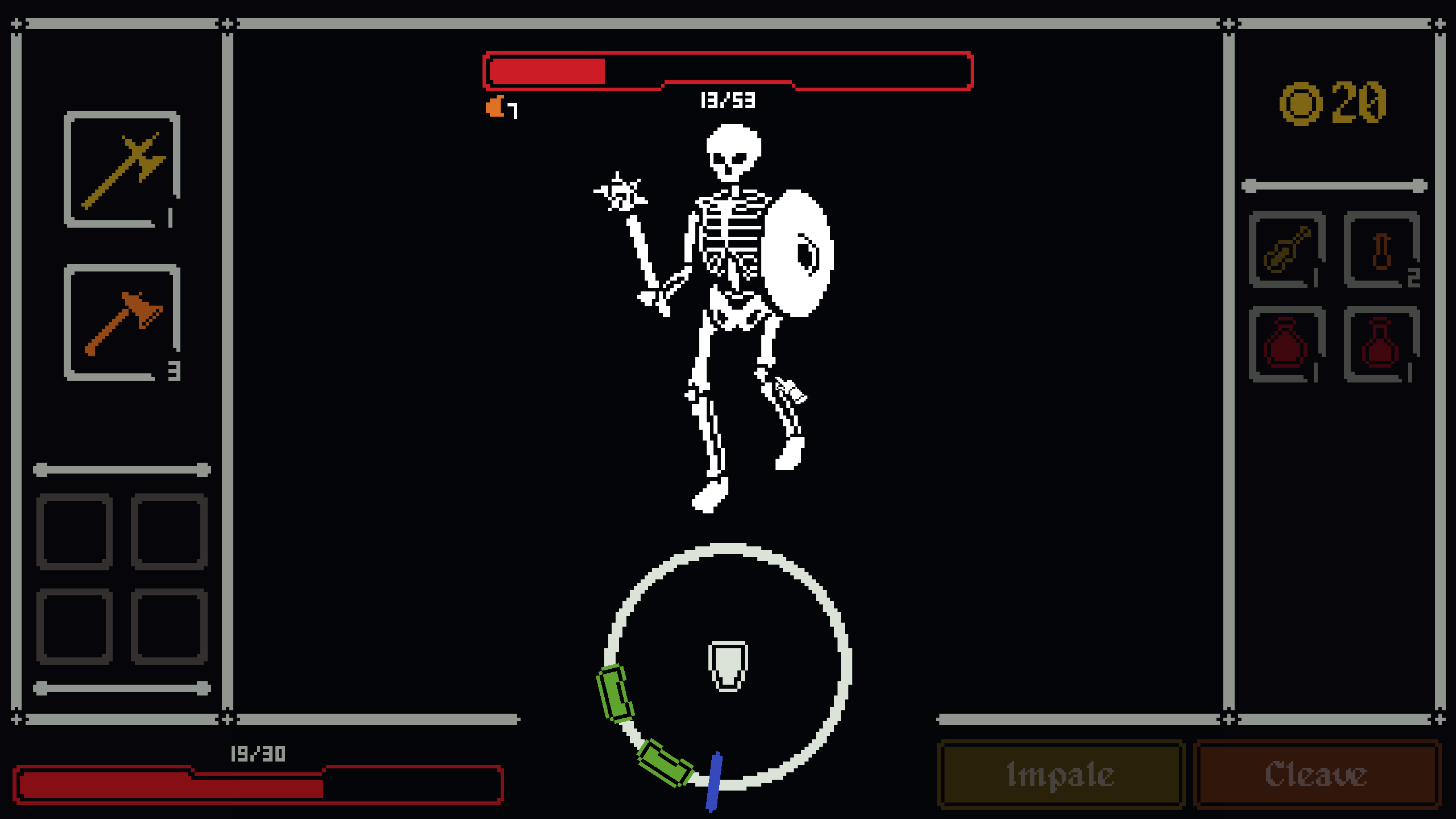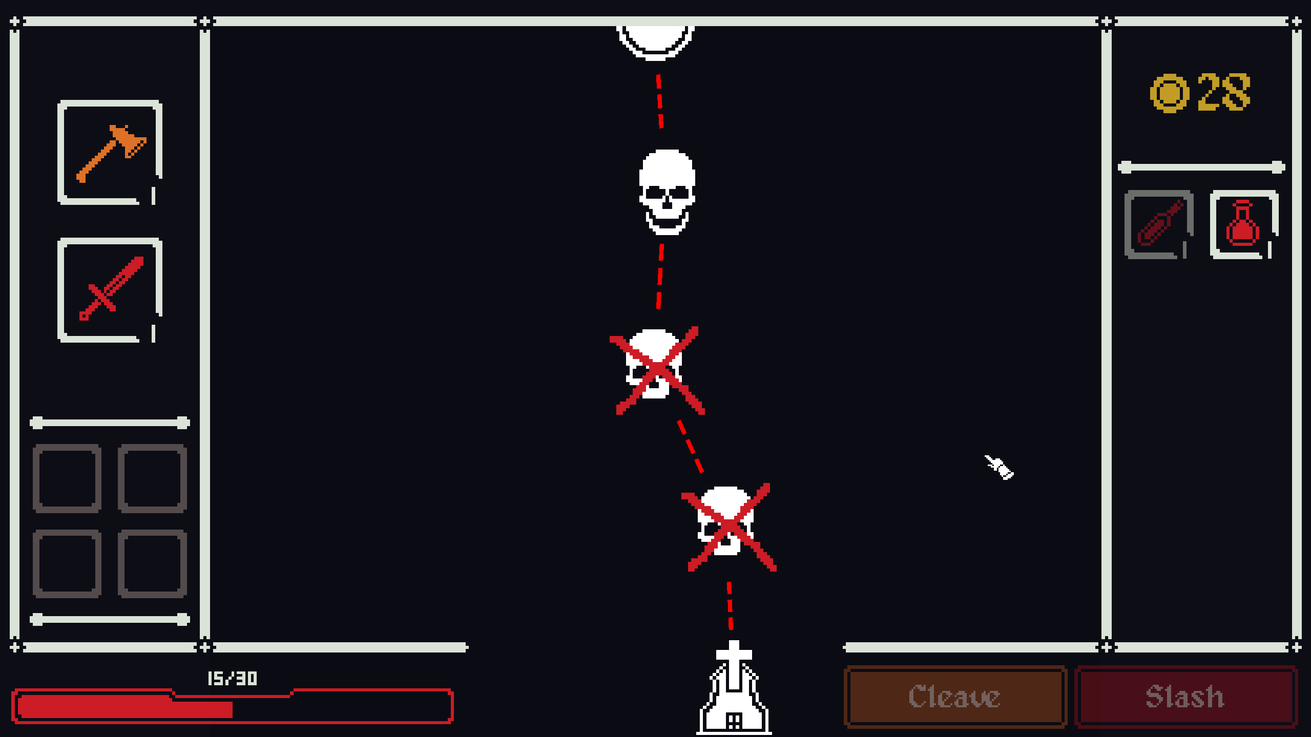 You have two weapons and an inventory of consumables. There are many enemies in your path, so use your resources wisely.
